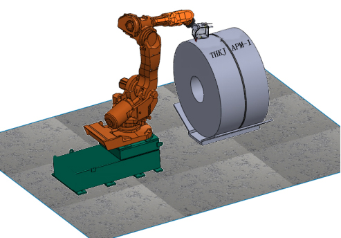 该设备机械系统由ABB机器人、机器人底座及隔热***围栏构成。其中IRB 6700机器人是系统的核心部件,IRB 6700 是一款非常适合工业现场的机器人产品,它可达到的远距离是3.2m,有效的负载能力是150KG,6轴驱动结构非常灵活,带动喷头在钢卷表明喷出需要的字符。(见下图)